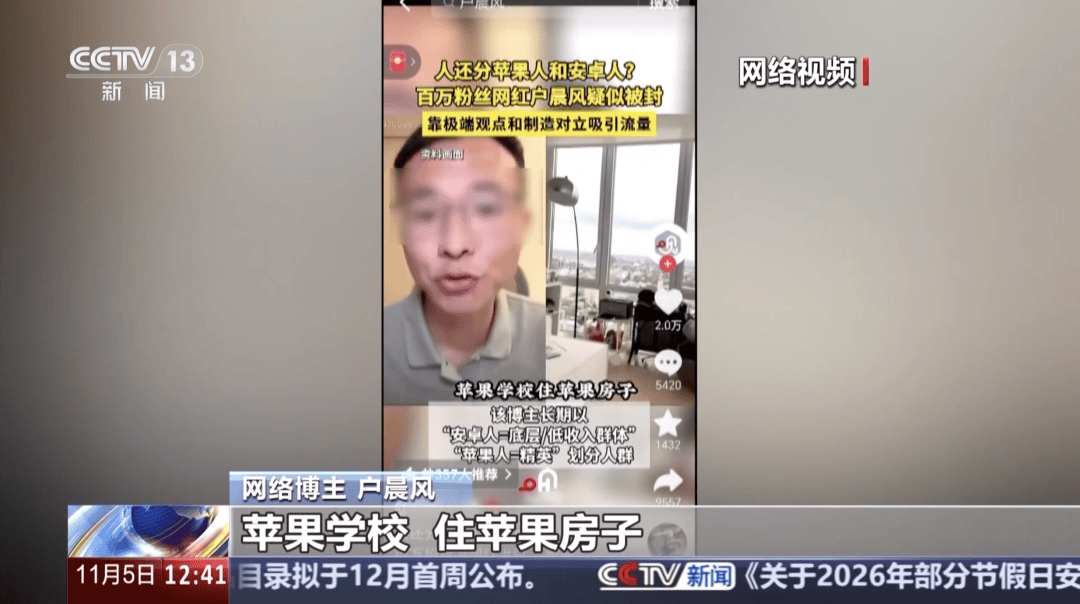 户晨风正在他的视频和曲播中建立了一套以“苹果/”为焦点的极端话语系统。几乎都是为了博取眼球、吸引流量。内容有“上百头牛”,